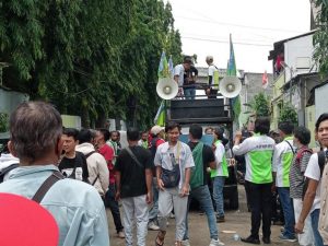 Kordinator Aksi Edi Priyatno Mengatakan, Aksi unjuk rasa bentuk perlawanan dan menuntut perusahaan yang sudah melakukan PHK Sepihak kepada karyawannya.